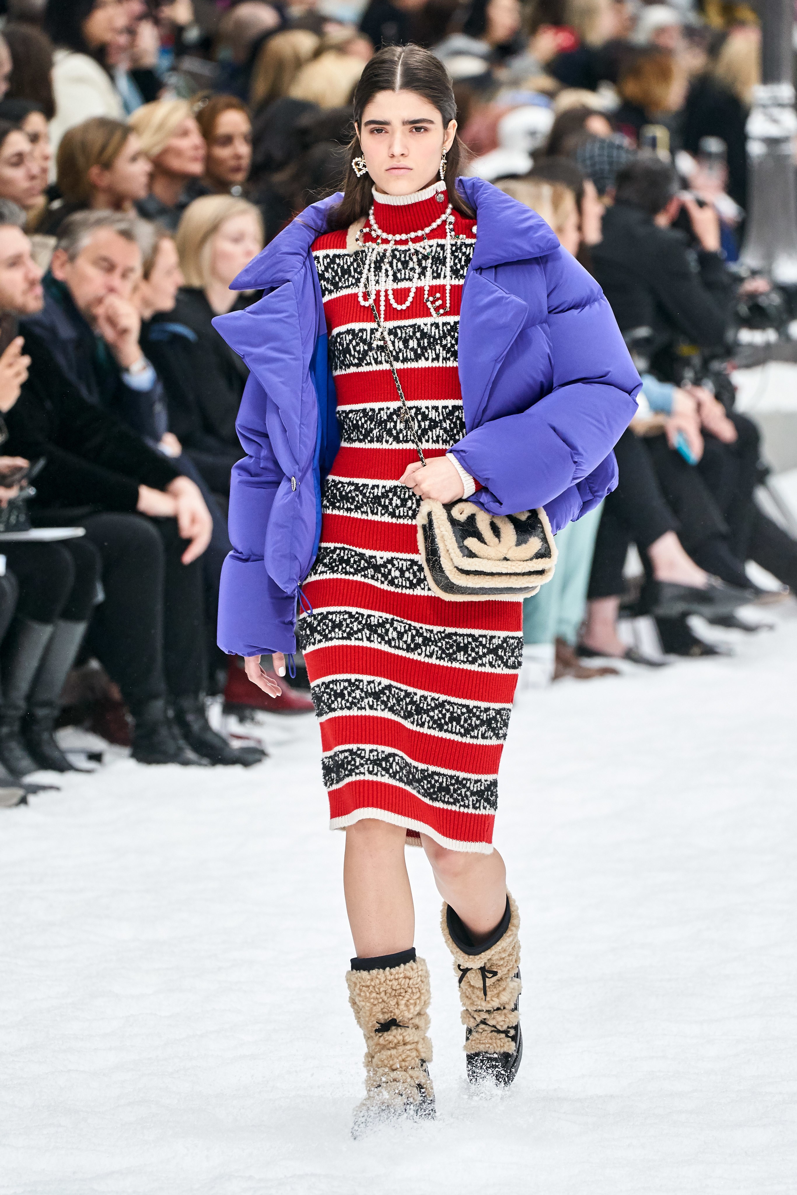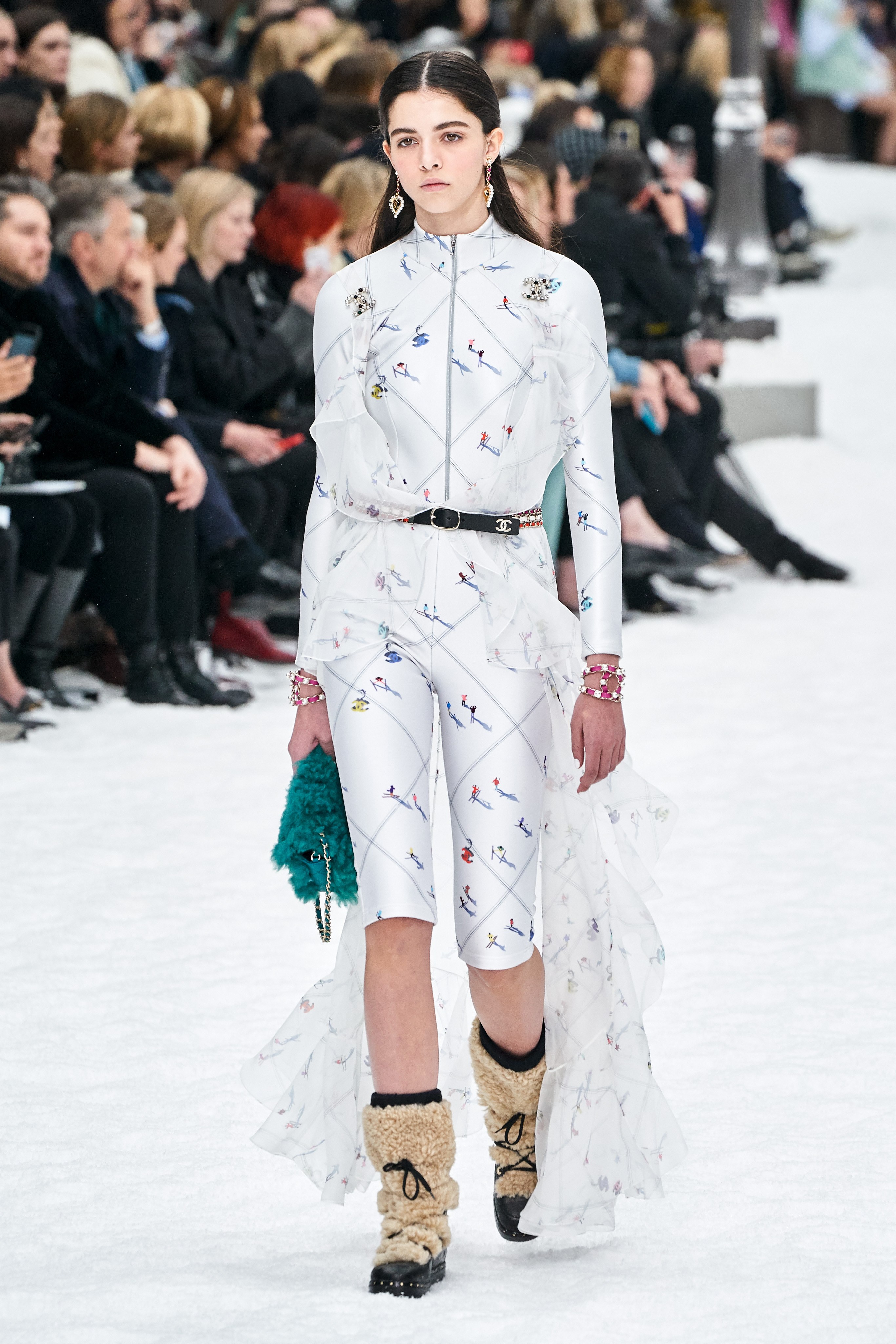 From grocery stores to airports Lagerfeld has staged many interesting scenes as the runway for his shows. This past Fall 2019 season, Viard created a snow covered winter wonderland at the Grand Palais in Paris. All guests were gifted an illustrated version of Karl and Coco Chanel who appeared alongside the words “the beat goes on. Unlike Karl himself, the show was sentimental to say the least, beginning with a moment of silence broken by his voice over a sound system.